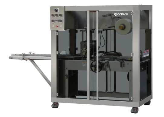 This machine is suitable for film automaticwrappingof single box articles invarious industries (with gold tear tape). The whole frame of the machine adoptscarbon steel plastic spraying, landing multi-open safety door structure, flatpush box structure, easy to change the mold, adjust the distance to adjust thesize by hand, greatly save the time to change the mold, the fixed film is fixedby air expansion shaft roller, so that the film is more simple and faster.